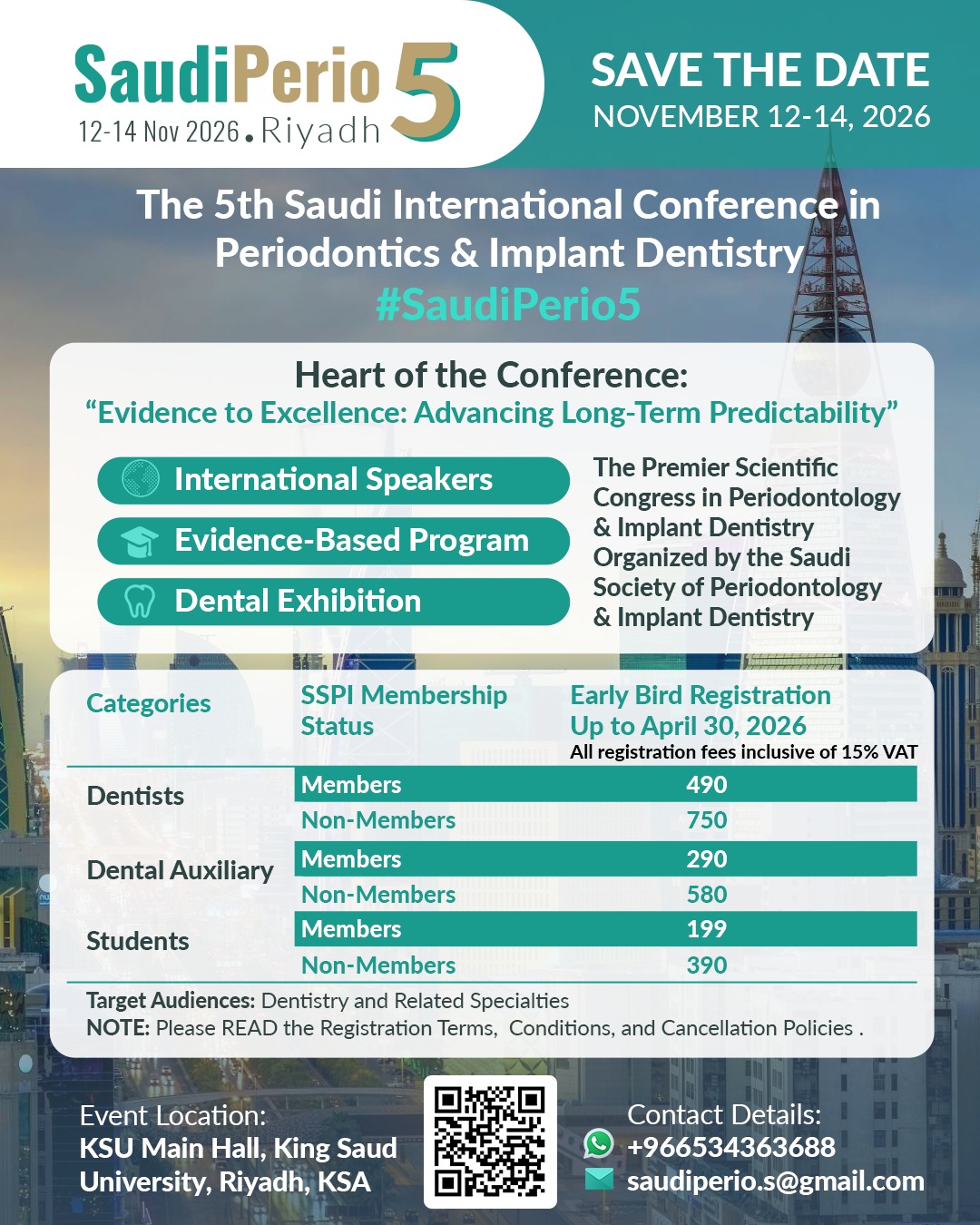 The #SaudiPerio5 Conference aims to elevate, revolutionize, and optimize the field of periodontal and implant dentistry by integrating robust evidence-based practices for improved long-term patient outcomes.