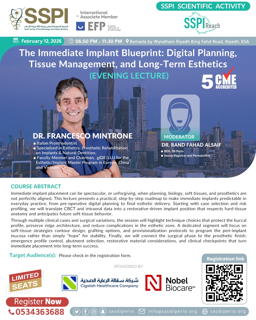 RIYADH The Immediate Implant Blueprint Digital Planning, Tissue Management, and Long Term Esthetics (EVENING LECTURE)